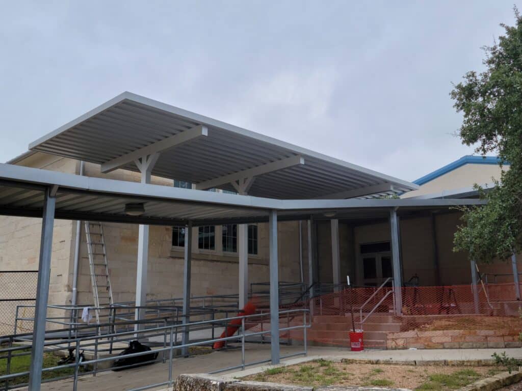 This project delivered a full upgrade to Blanco Elementary School’s exterior, beginning with site demolition and moving into major structural and site enhancements. Our team installed concrete retaining walls, new sidewalks and flatwork, drilled piers, and completed extensive earthwork and site grading. Aluminum walkway covers were constructed, along with new landscaping and irrigation, creating a safer, more functional, and welcoming environment for students, staff, and families.