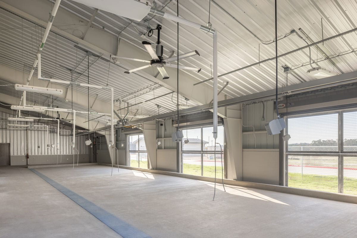 Our team built a new 7,500 square foot Steer and Lamb Barn and transformed the existing 7,500 square foot Ag Barn into a fully updated, student‑ready facility. With new gas heaters, water access, sloped trench drains, HVLS fans, and upgraded animal pens, the space now gives students and staff the tools they need to care for animals safely and efficiently.