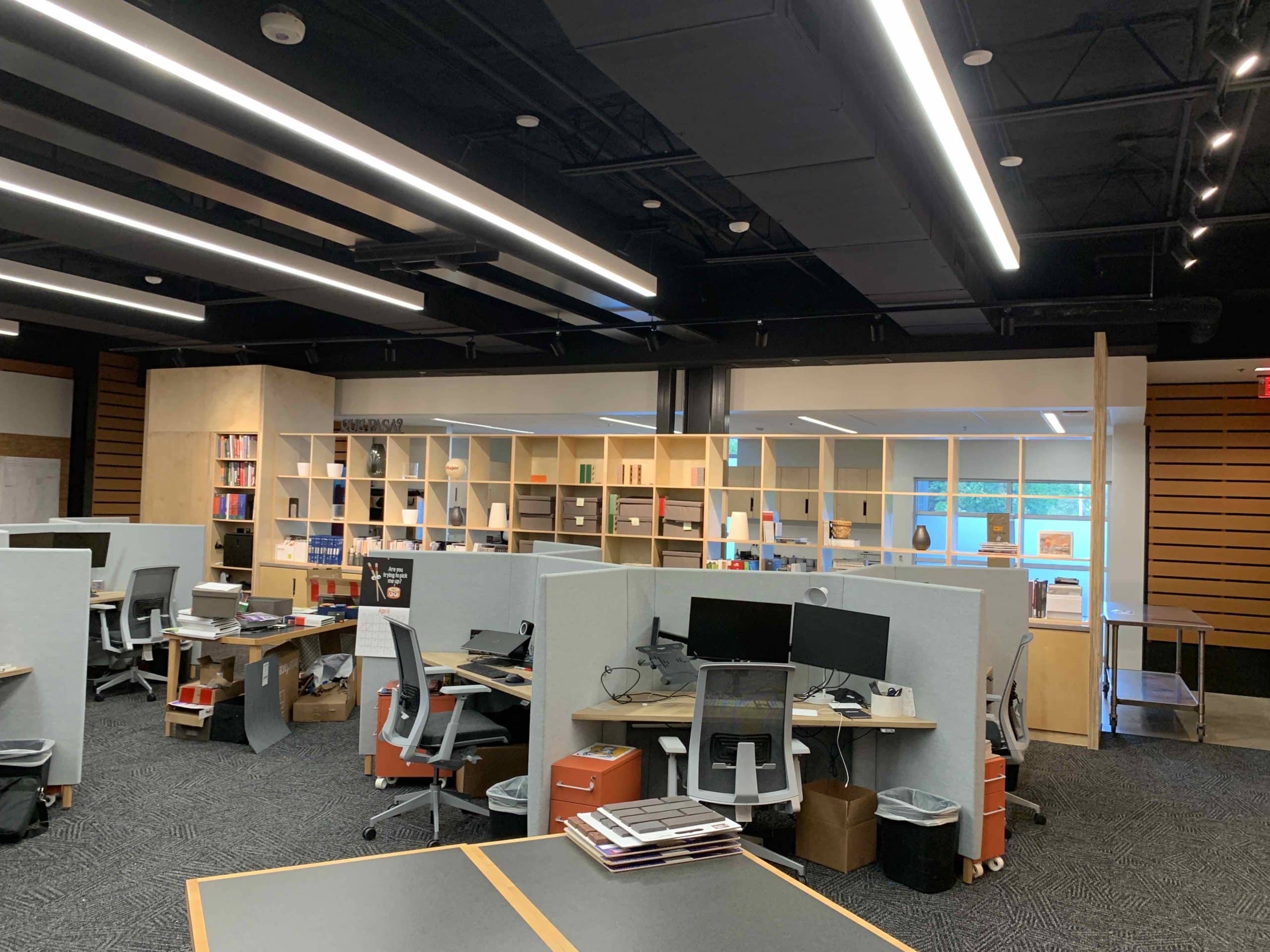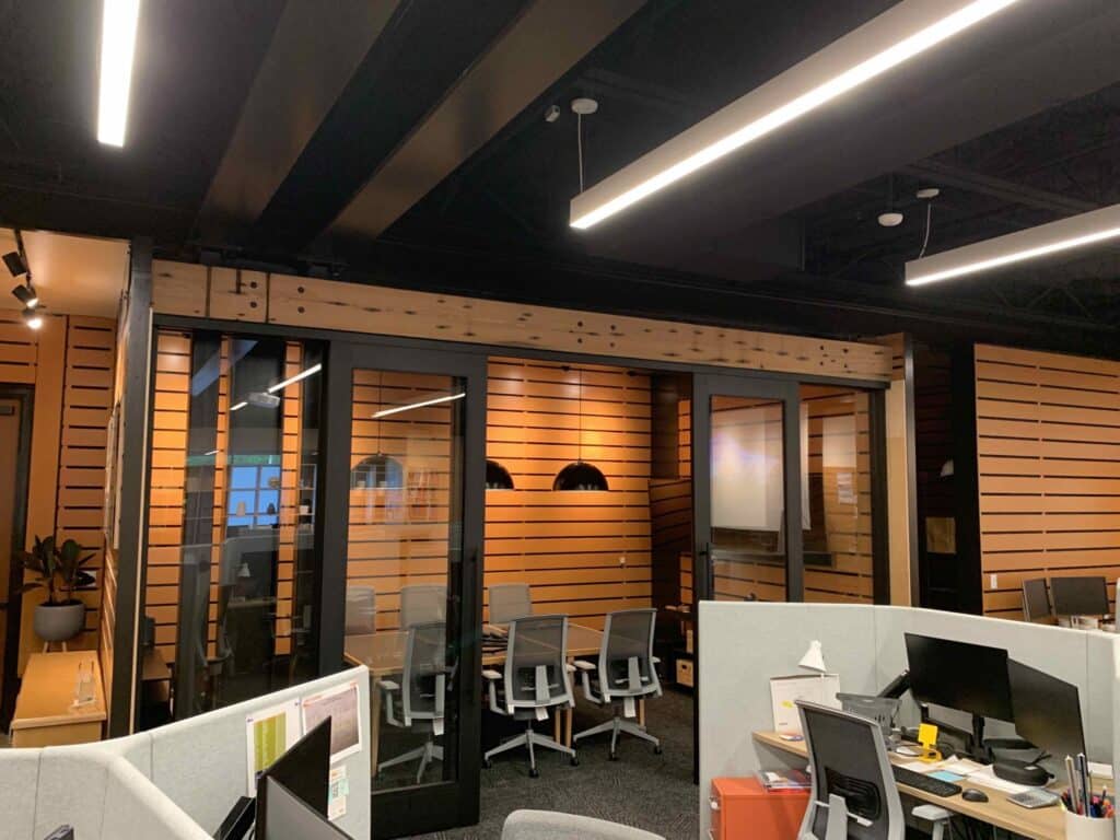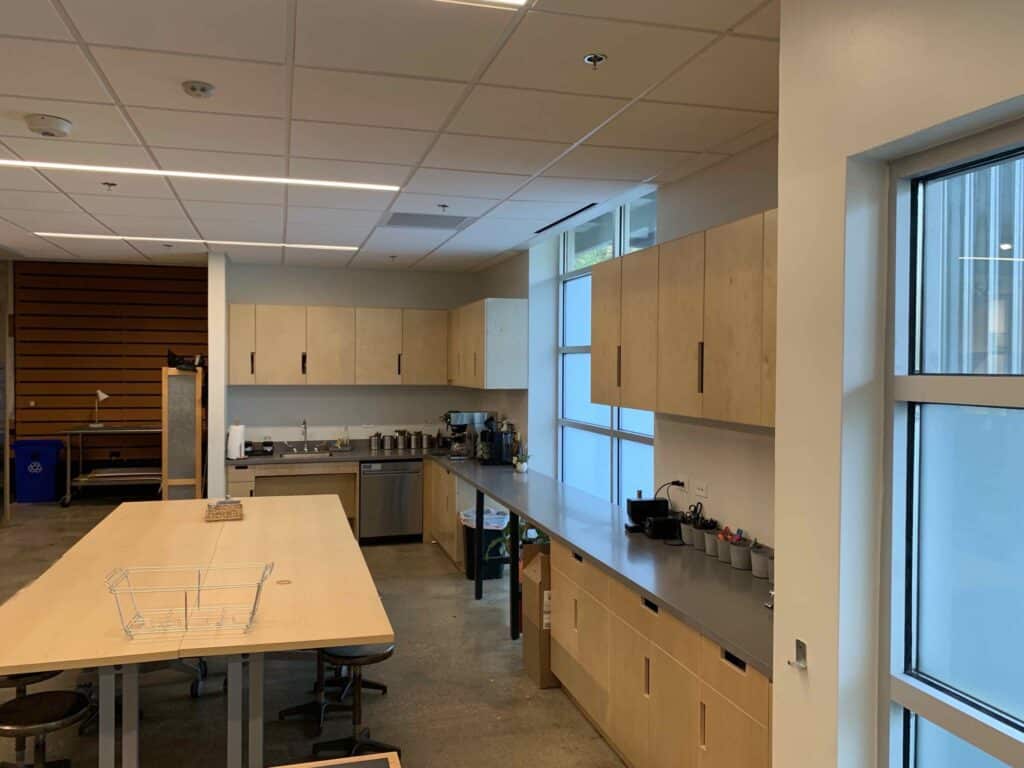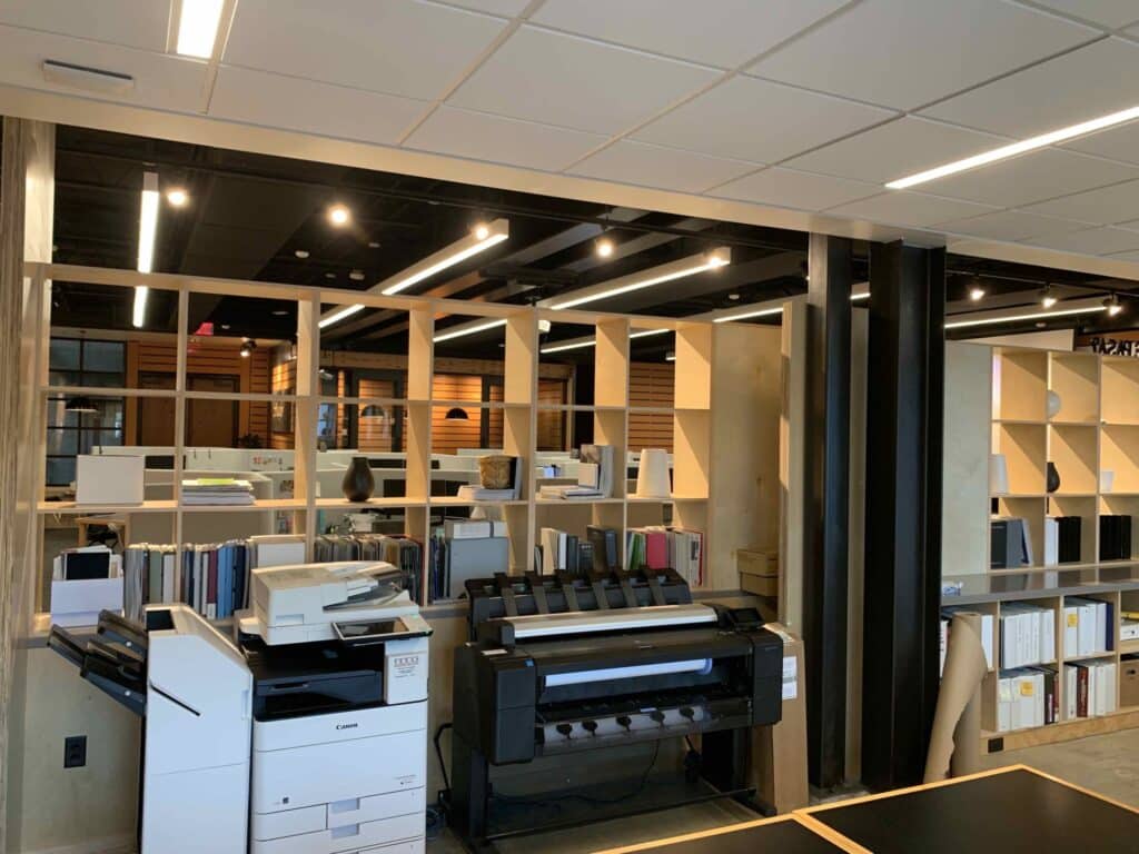 This project consisted of a 3,660 SF renovation to an existing space at the historic Pearl Brewery to create a new studio for Pfluger Architects. The project highlights exposed structural steel, warm wood paneling, and specialty lighting that elevates both the aesthetic and functionality of the studio. We are proud to deliver a space for one of our long‑time architectural partners.